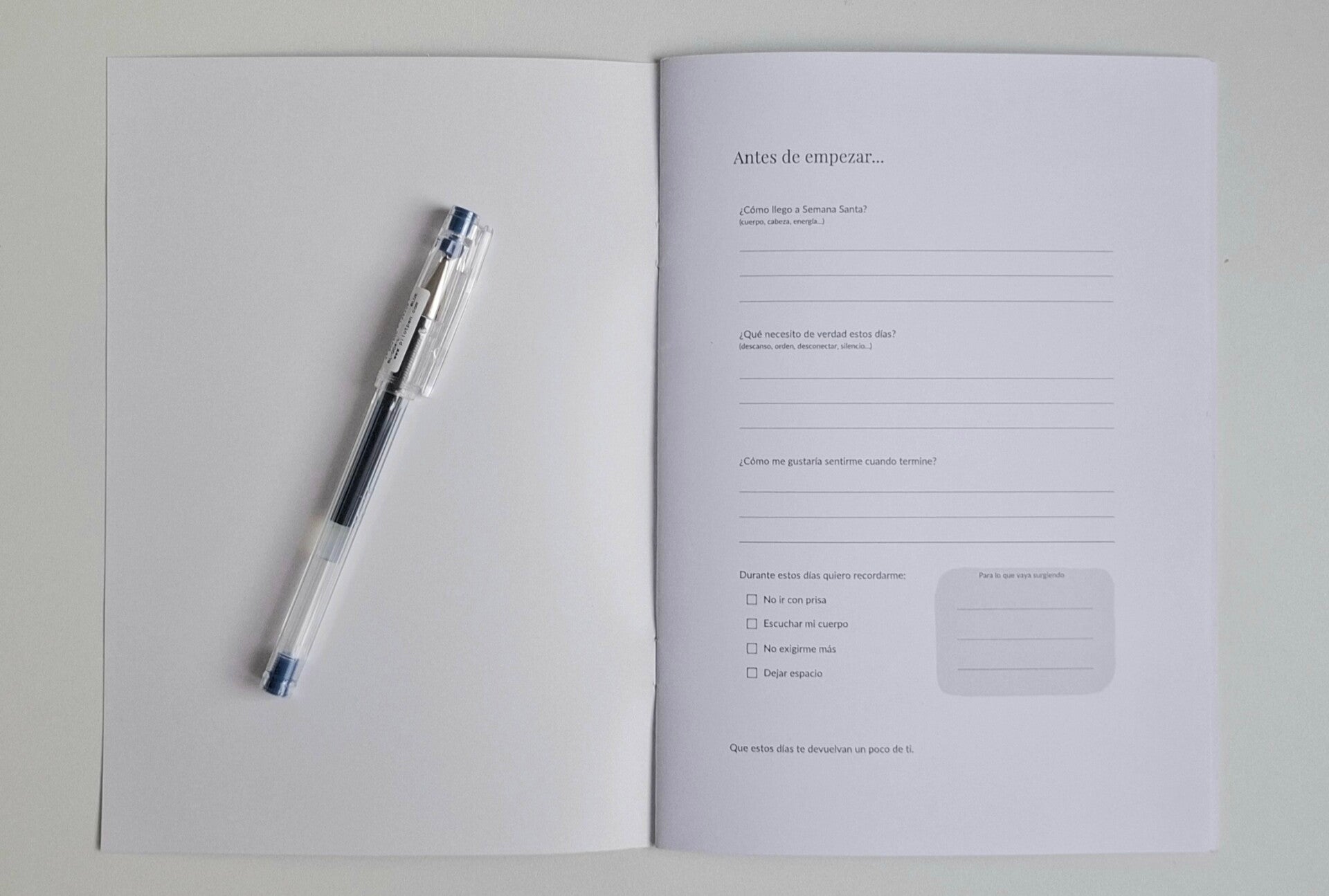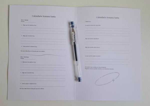 Este cuaderno está pensado para acompañarte durante Semana Santa desde la calma y el cuidado personal.